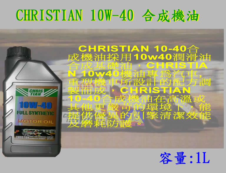 CHRISTIAN 10-40合成機油是一款 優異的合成高效能引擎10-40合成機油