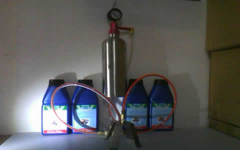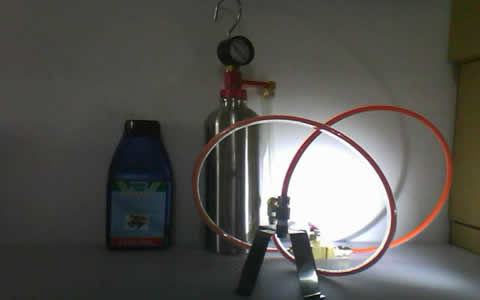 先將柴油進氣歧管清洗劑加入柴油進氣歧管清洗工具內經由柴油進氣歧管清洗工具