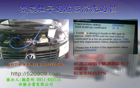 經過這兩個步驟讓微碳粒子過濾器(DPF),恢復最佳的效能,有效地延長使用壽命。 |