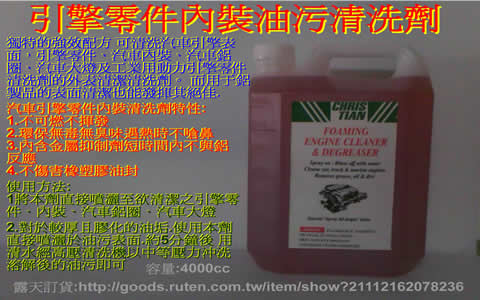 *將本劑直接噴灑至欲清潔之引擎零件,內裝
